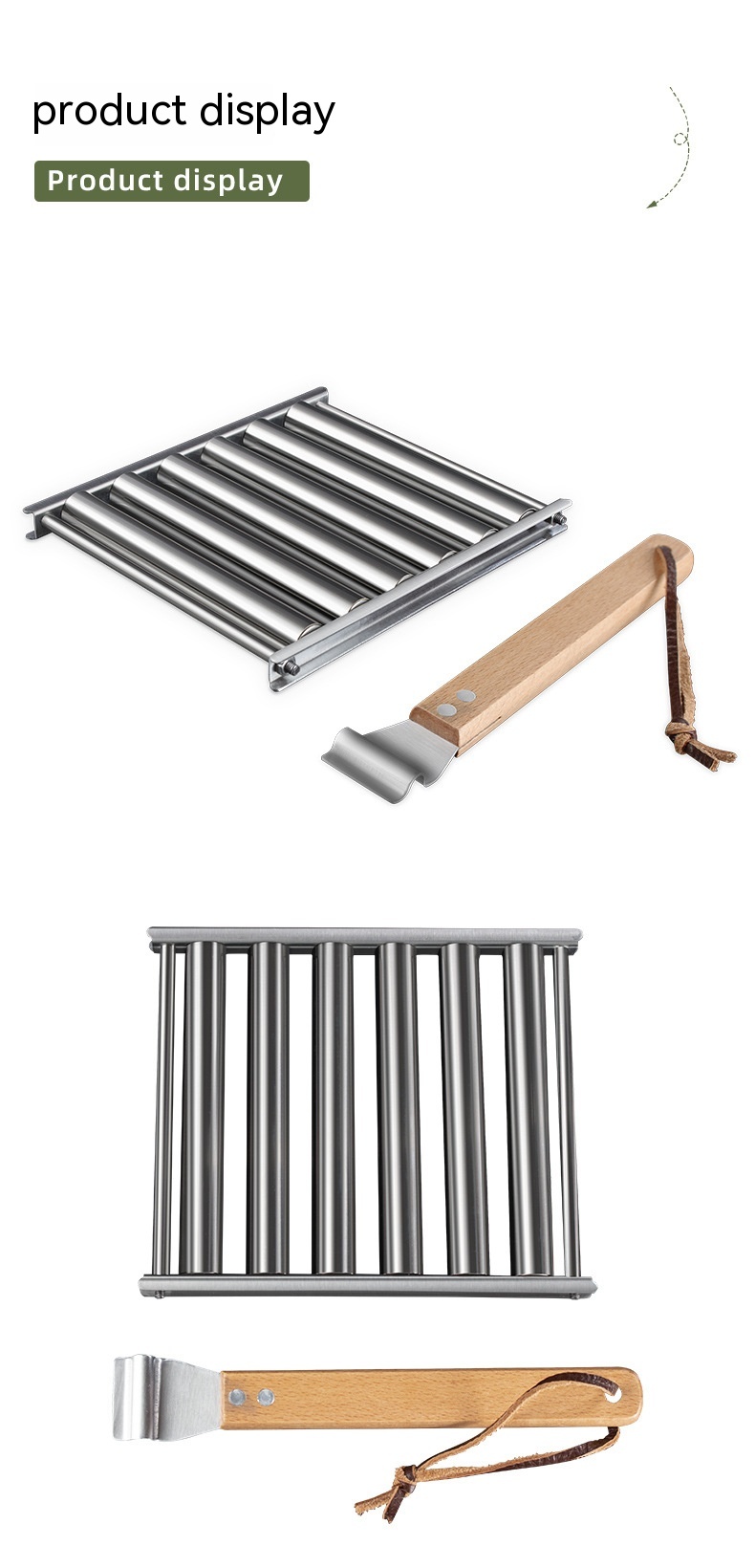 Hot Dog Rack Removable Stainless Steel Roasted Sausage Doll Rack Rolling Barbecue