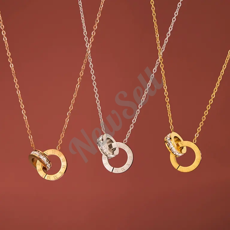 Fashionable Stainless Steel Double-Ring Diamond-Encrusted Necklace For Women — актуальное предложение в категории на маркетплейсе NewSell.