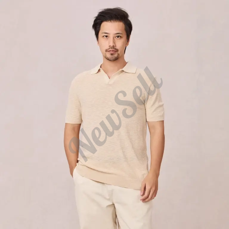 Textured Knit Short-sleeve Mens Slim-fit Business Polo Shirt In Ice Silk — актуальное предложение в категории Футболки и поло на маркетплейсе NewSell.