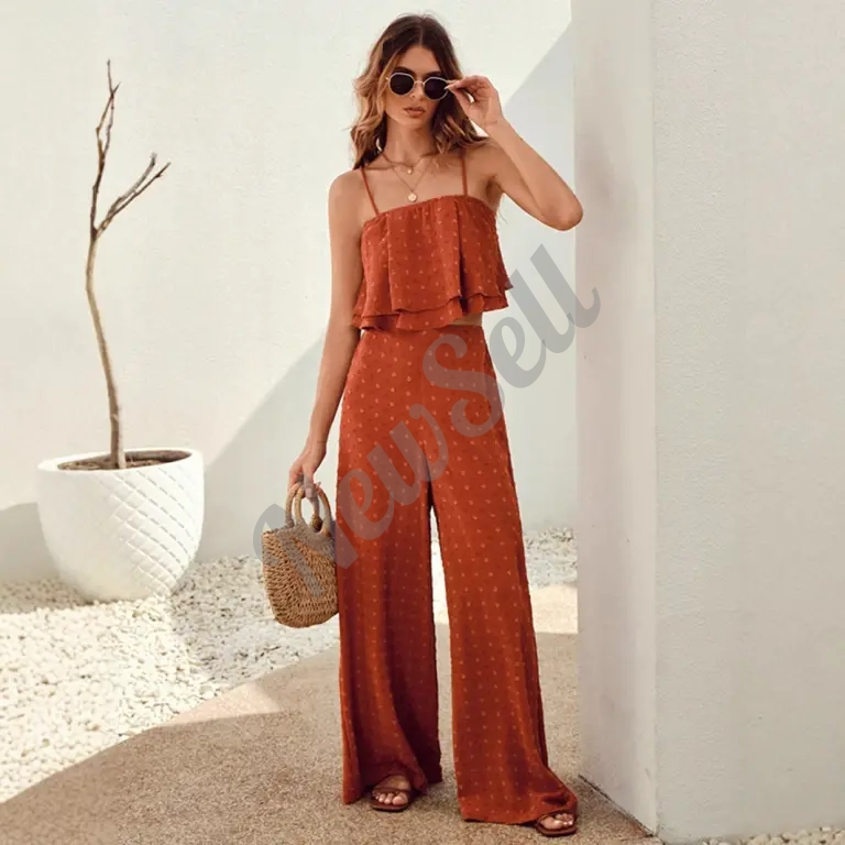 Cropped Vest Ruffled Top Casual Chic Wide-leg Pants — актуальное предложение в категории Пиджаки и костюмы на маркетплейсе NewSell.