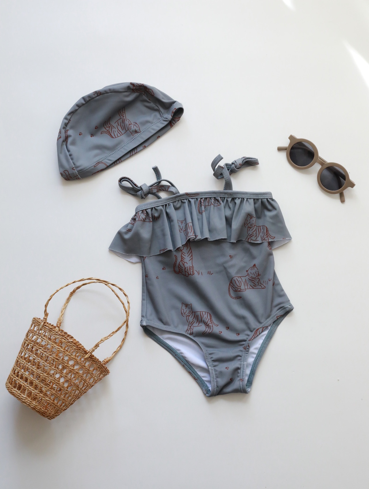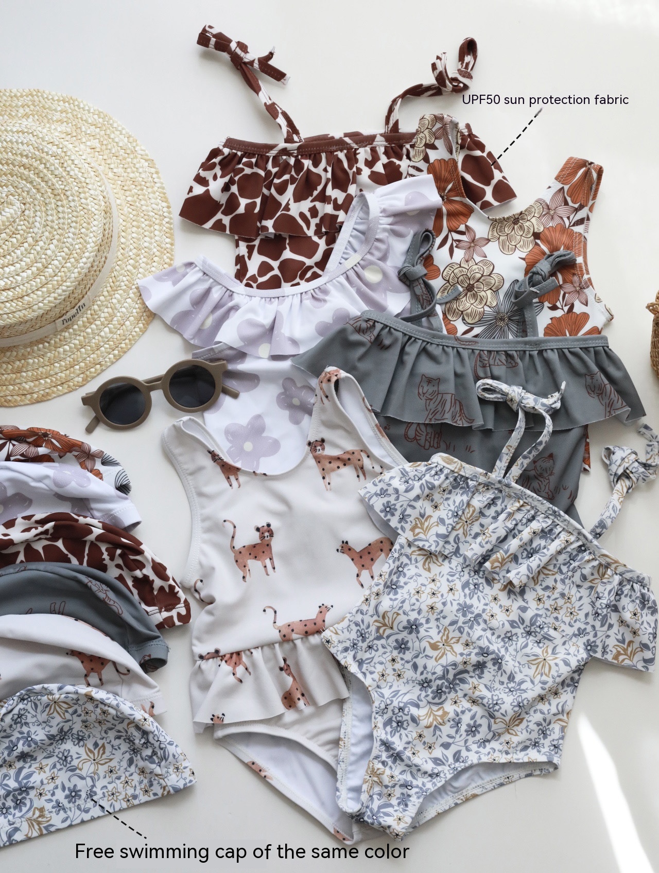 Color: RC swimsuit with shoulder straps brown stripe, RC swimsuit with shoulder straps dark gray Tiger, RC swimsuit with shoulder straps purple floral, RC vest swimsuit tropical flower, RC vest swimsuit yellow leopard print, RC lace swimsuit five petal flower